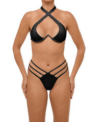 - Detail Feature: V-underwire bikini top, Crisscross halter neck, Adjustable neck tie, Pull on style