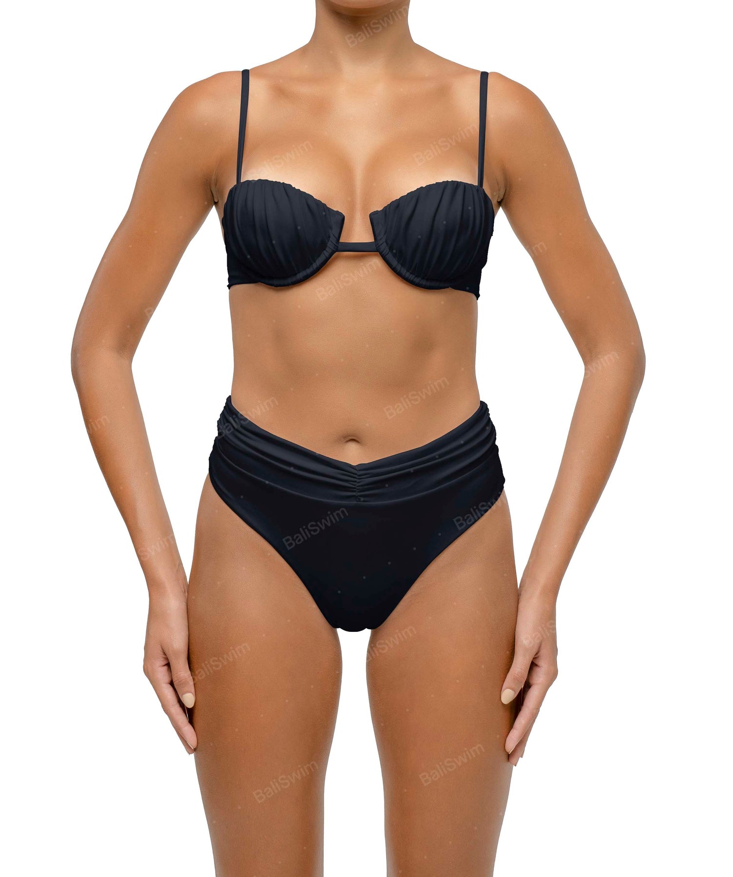 - Detail Feature: Balconette bikini top, Bust gathered detail, Fixed padding with underwire, Adjustable Straps, Clasp closure
