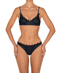 - Detail Feature: Underwire self tied top, Flower crochet along neckline, Adjustable shoulder straps