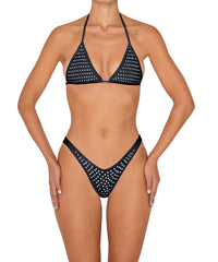 - Detail Feature: Triangle binding top with silver studs, adjsutable 8mm underbust straps