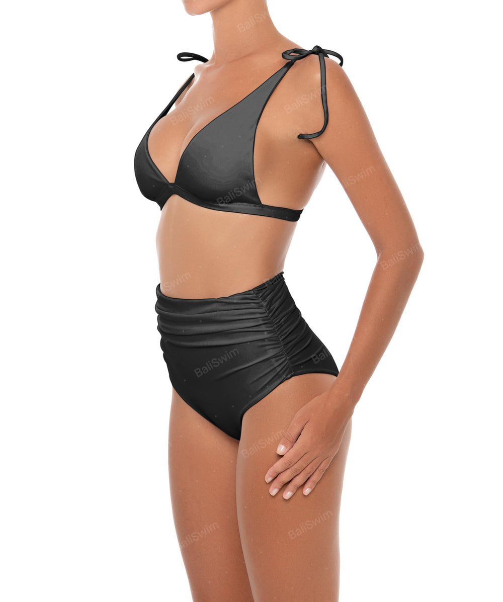 - Detail Feature: Gathered Bust Panels with Adjustable Tie Straps