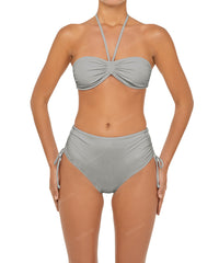 - Detail Feature: Bandeau bikini top, Adjustable halter ties, Gathered detail