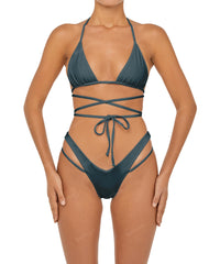 - Detail Feature: Triangle Bikini Top, Adjustable underbust, Halter ties, Adjustable wrap around straps detail