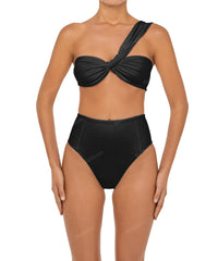 - Detail Feature: One shoulder bandeau bikini top, Ruched detail, Clasp closure