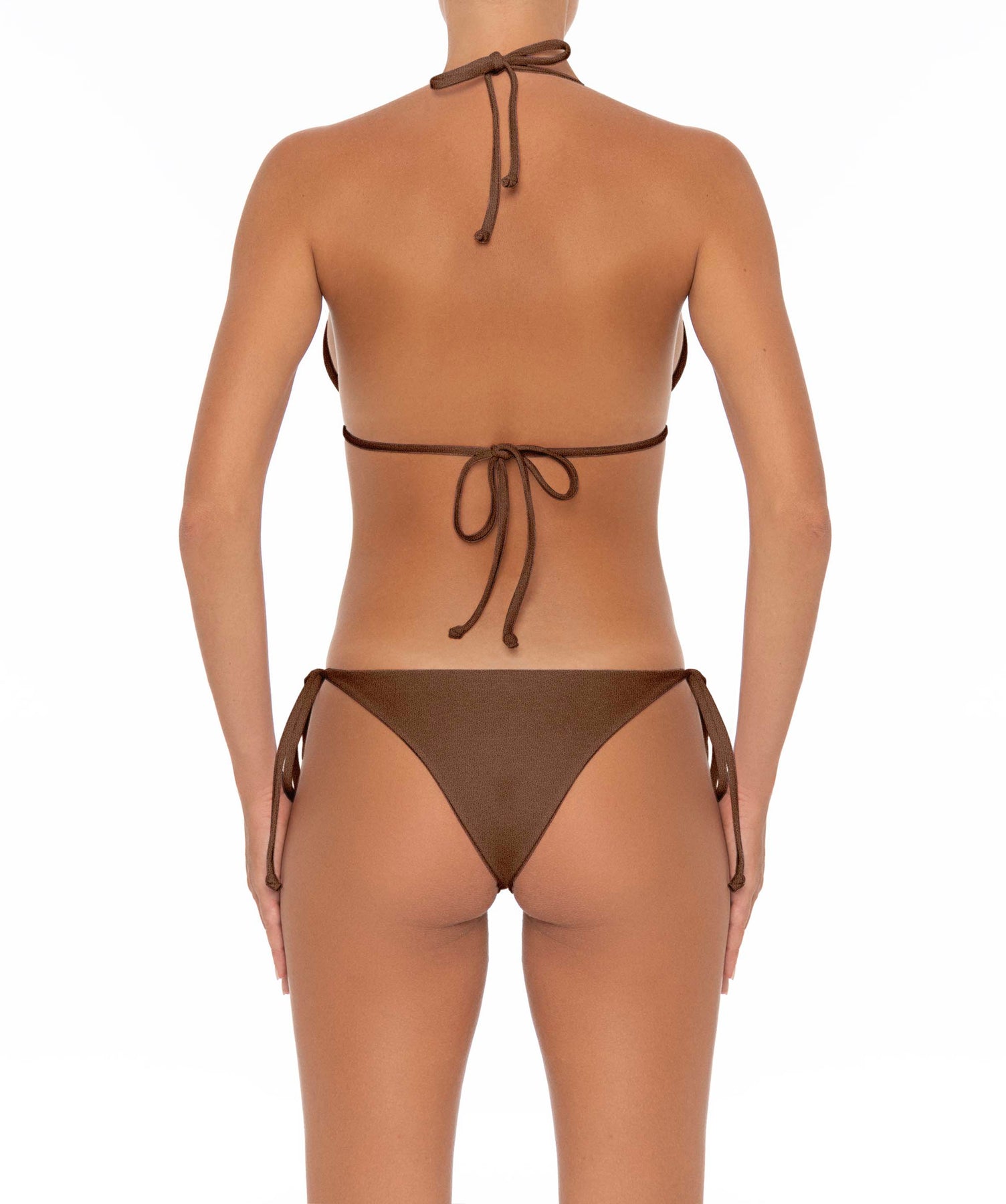 - Detail Feature: Basic triangle bikini top & halter neck. Adjustable underbust, halter ties & tie closure