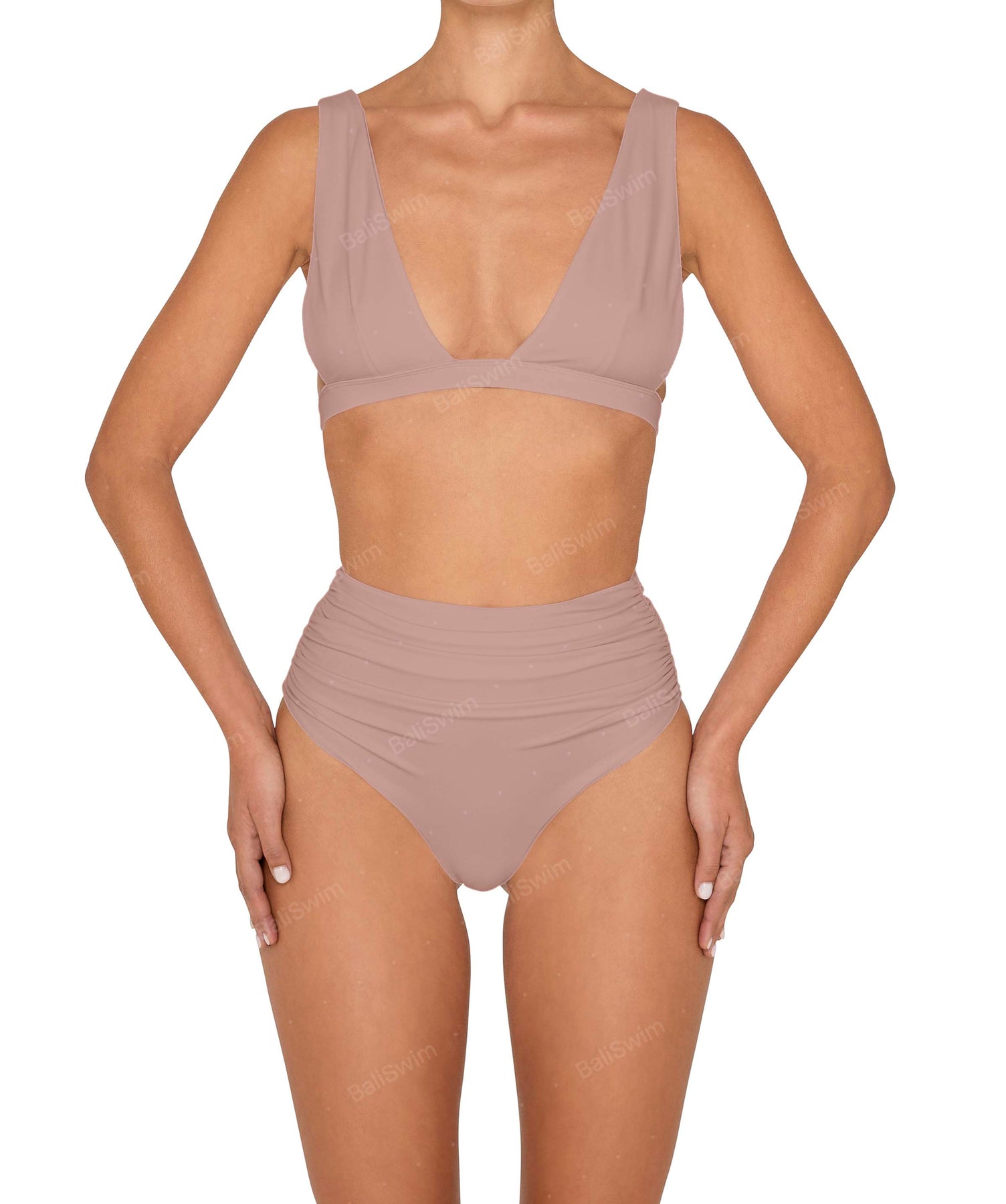 BSWS-B150 Side Shirred High Waisted Bikini Bottom