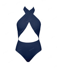 - Detail Feature: Halter crisscross one-piece with adjustable halter ties and a low back