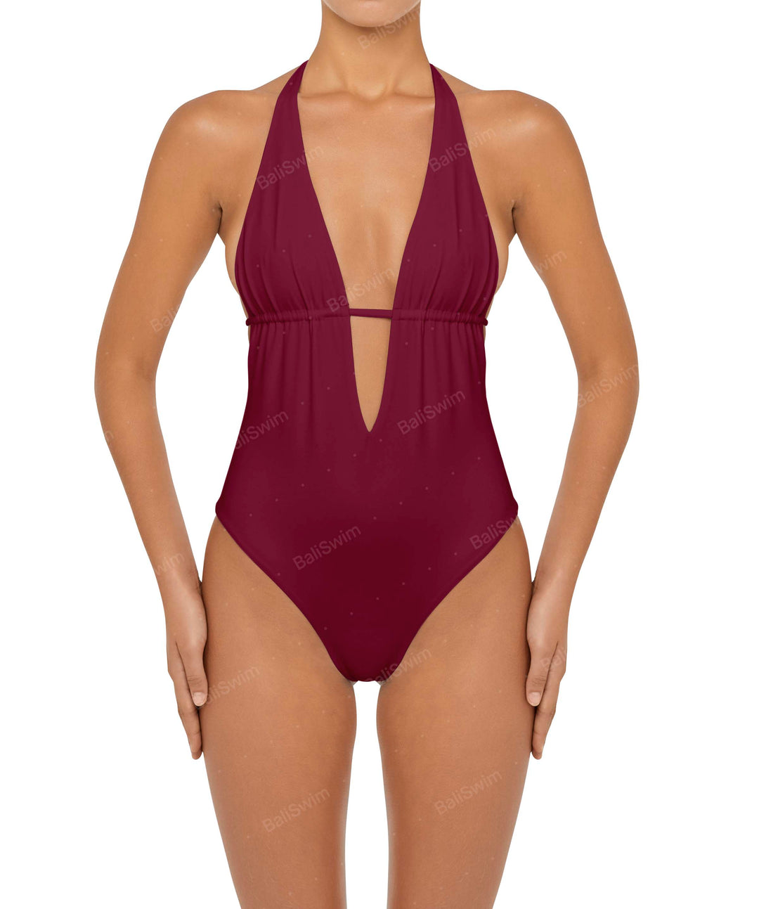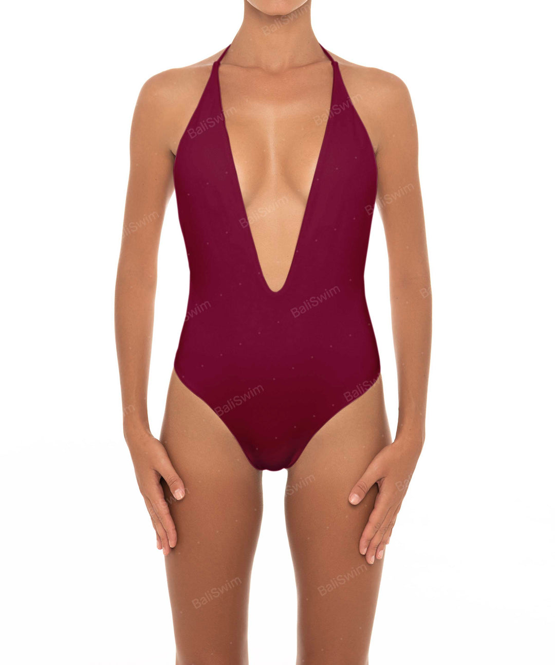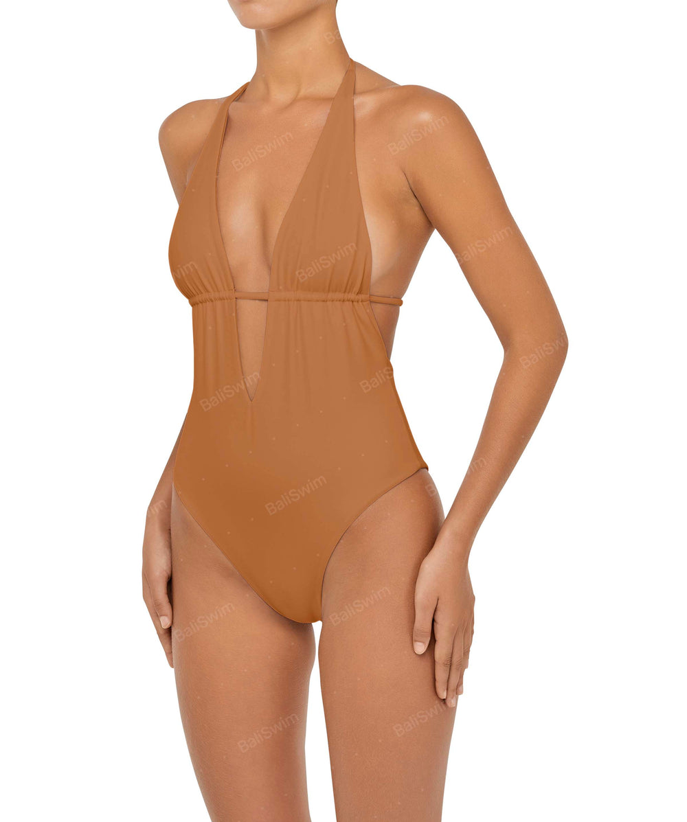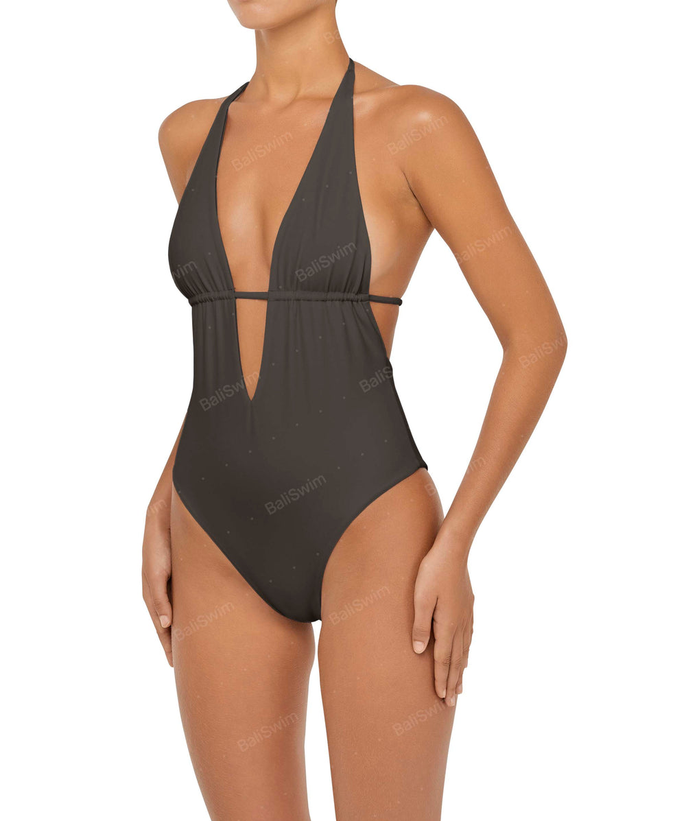 Plunge Neck Halter One Piece