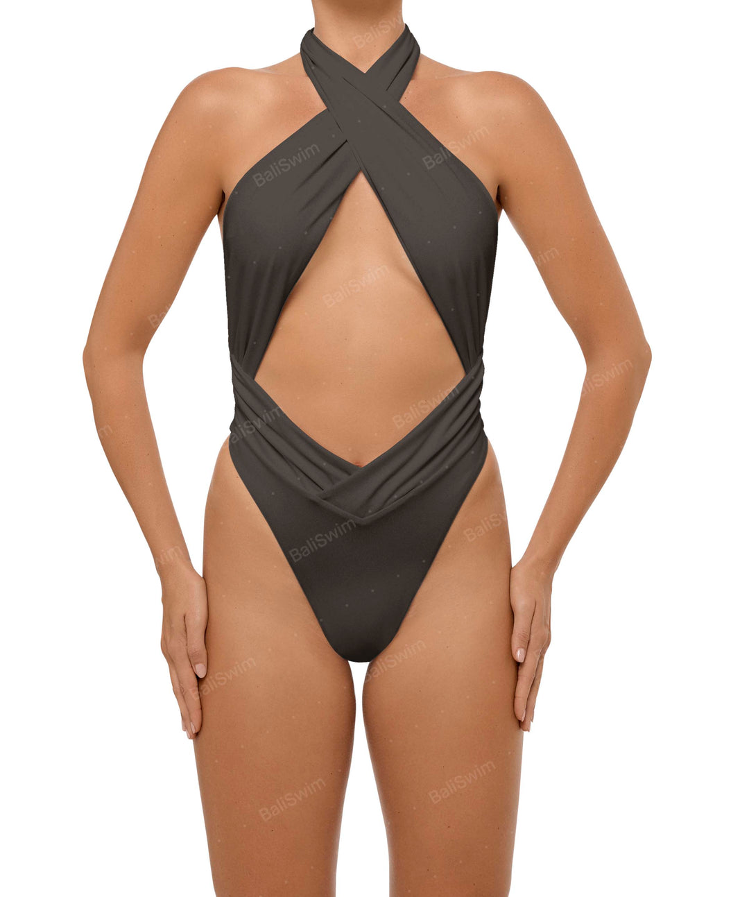 Plunge Neck Criss Cross One Piece