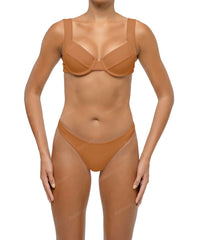 - Detail Feature: Basic bikini bottom, Brazilian brief style, Curved waistline, Visible cover stitch, Mid-rise