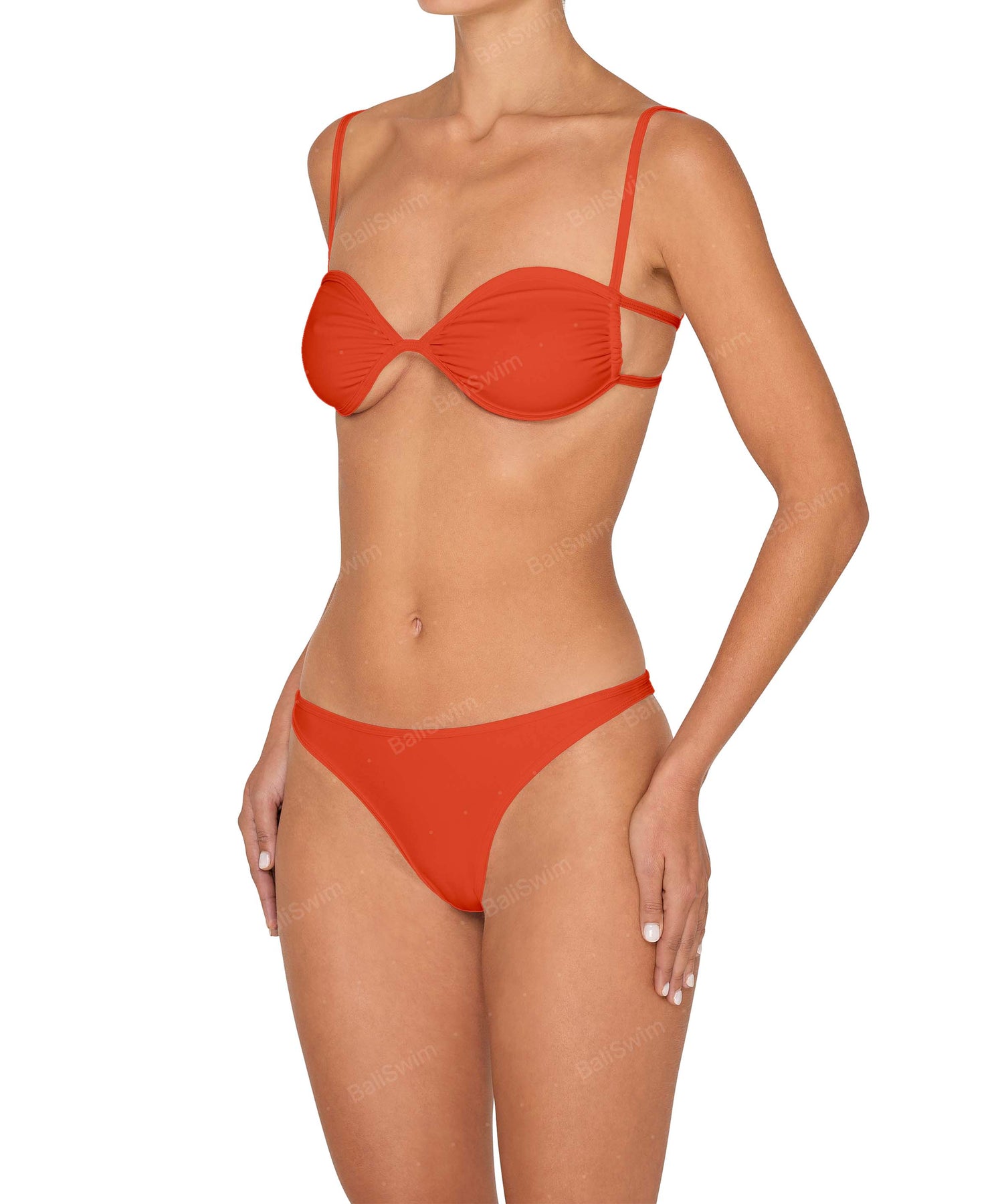 - Detail Feature: Low waist bottom, cheeky coverage, binding finisihing