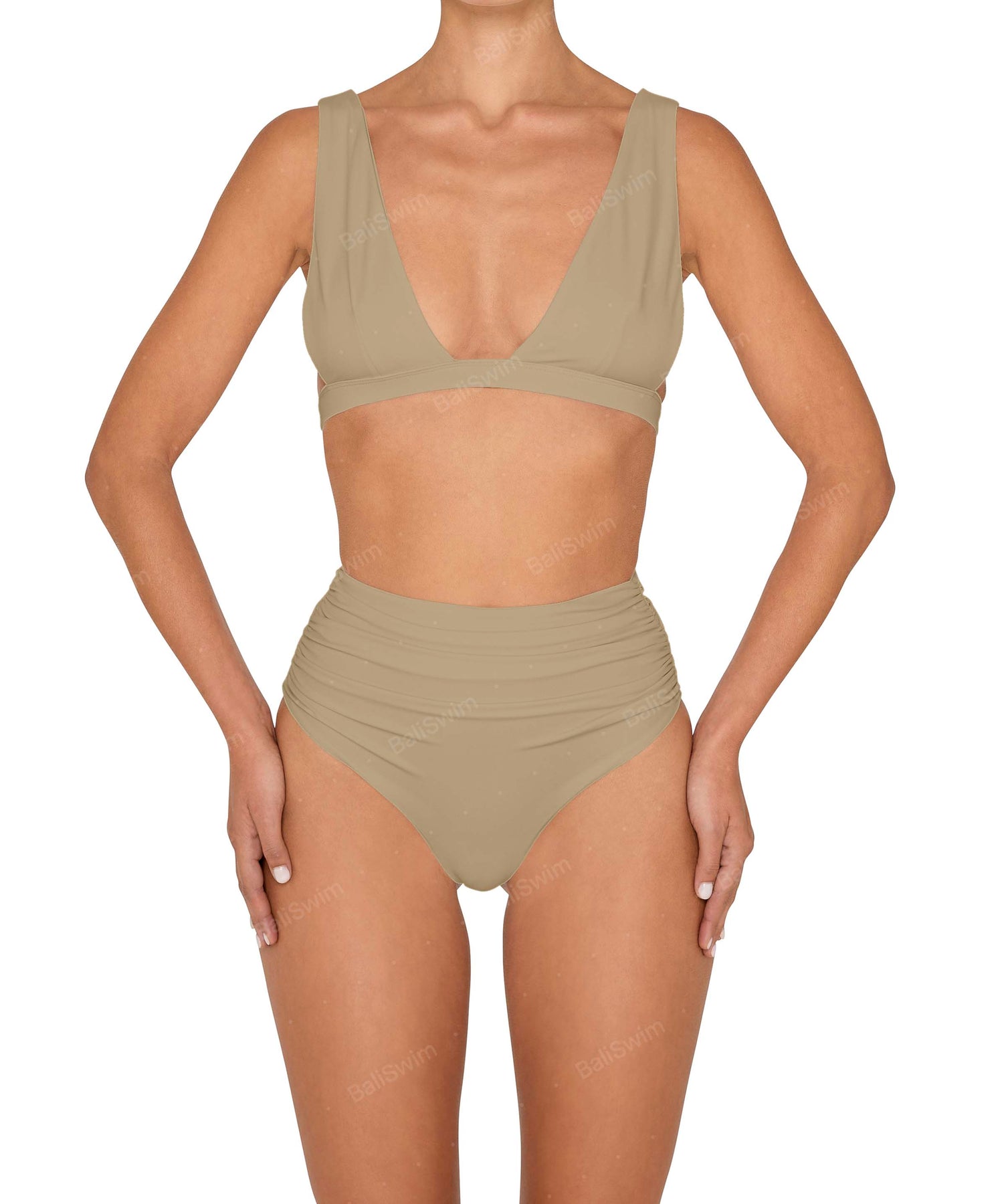 BSWS-B150 Side Shirred High Waisted Bikini Bottom