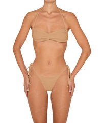 - Detail Feature: Side tie bottom with cheeky coverage, spaghetti strap, seamless finishing