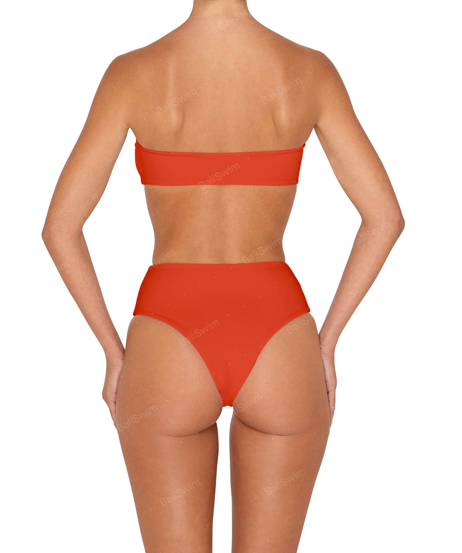 - Detail Feature: High rise bottom with low leg cut, medium coverage, seamless finishing
