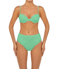- Detail Feature: High rise bikini bottom, Waistband detail