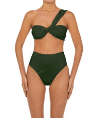 - Detail Feature: High rise bikini bottom, Front and back side panel detail, High Cut