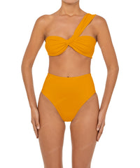 - Detail Feature: High rise bikini bottom, Front and back side panel detail, High Cut