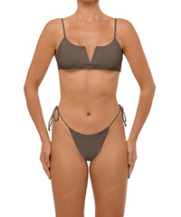 - Detail Feature: Side tie bikini bottom, Adjustable thin straps closure, Mid Rise, High Cut, Brazilian Style