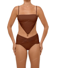 - Detail Feature: High rise bikini bottom, Ruched detail, Wide sideseam, Brief style