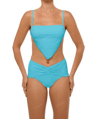 - Detail Feature: High rise bikini bottom, Ruched detail, Wide sideseam, Brief style