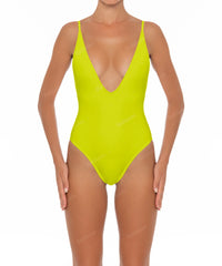 - Detail Feature: Plunge V-neck one-piece with adjustable straps and a low back