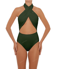 - Detail Feature: Halter criss cross one piece, Adjustable halter ties, Low back