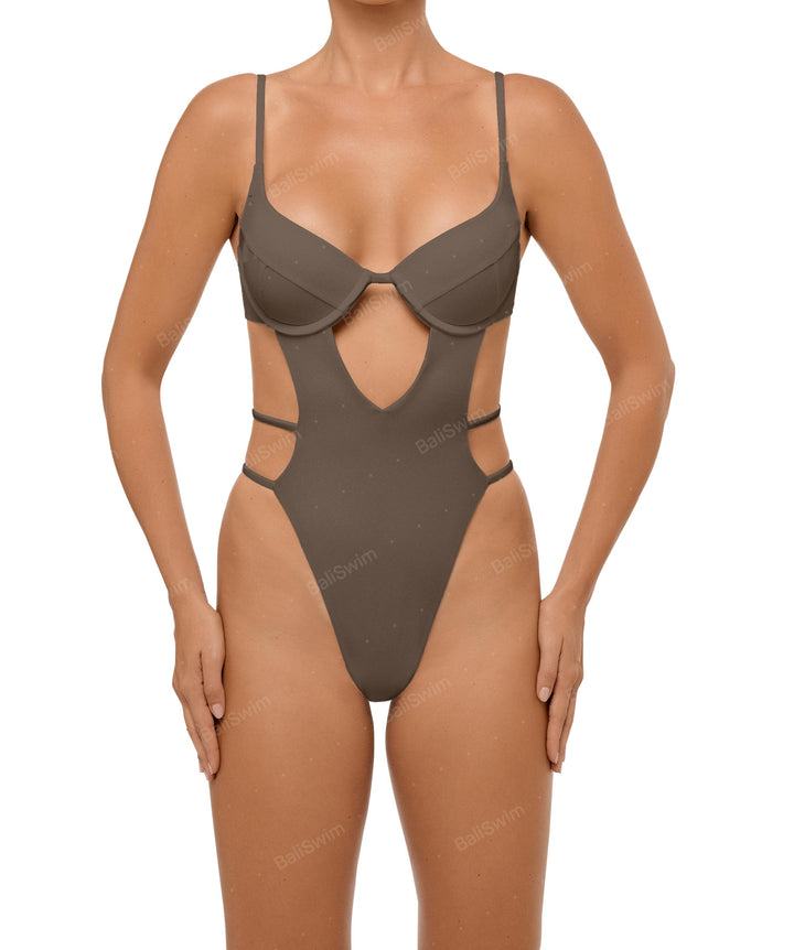 - Detail Feature: V-underwired one piece, Cut out detail, Waist strap detail, Adjustable shoulder straps, High cut