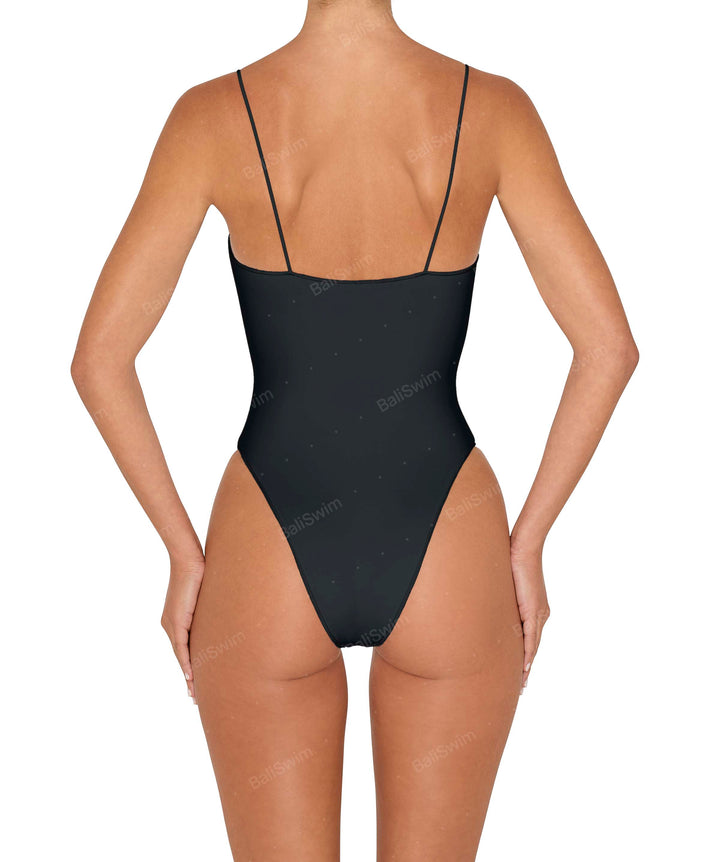 - Detail Feature: Square neckline one piece, with high leg opening, elastic corded straps, and baby lock stitch finishing