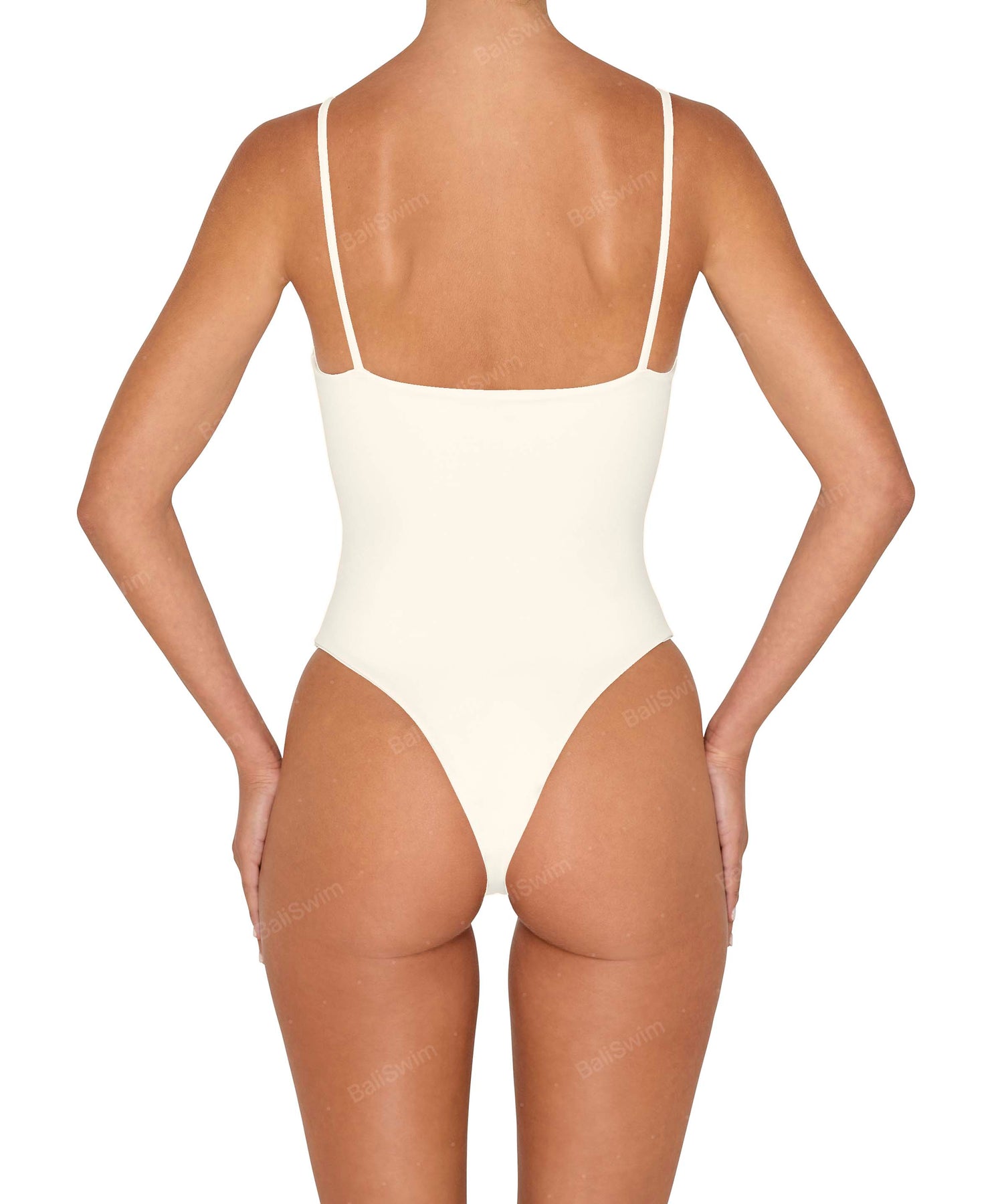 - Detail Feature: Straight neckline one piece, with resin ring details, high leg cut, seamless finishing, option fix straps/ adjustable