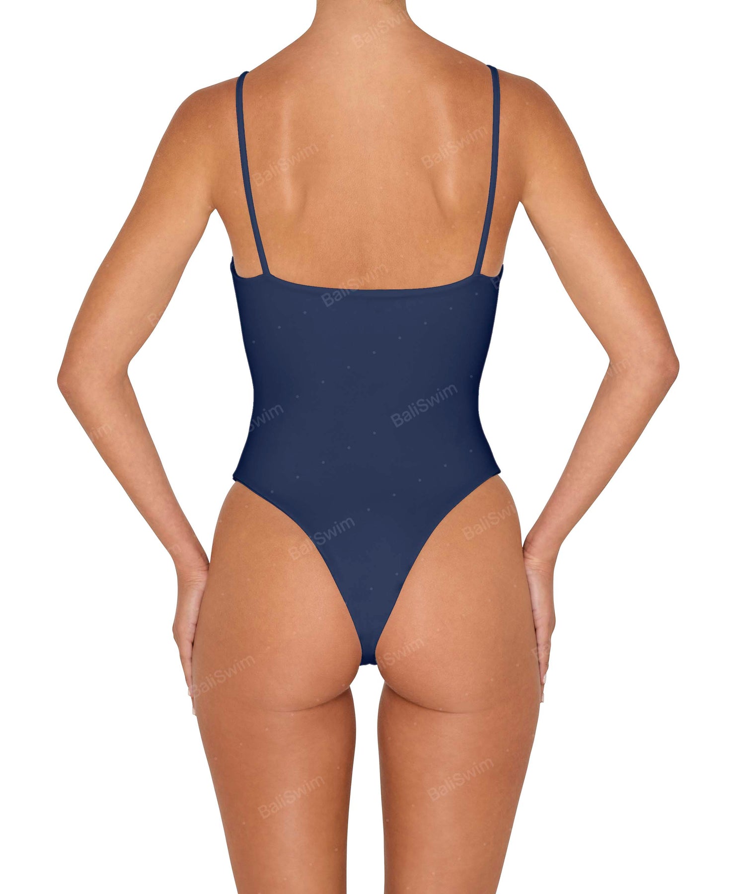 - Detail Feature: Straight neckline one piece, with resin ring details, high leg cut, seamless finishing, option fix straps/ adjustable