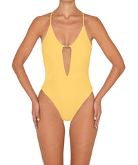 - Detail Feature: Cut-out one piece with custom hardware connector detail, high cut leg opening, adjustable straps