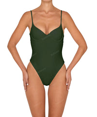 - Detail Feature: Classic underwire one piece with adjustable straps, high leg opening, back cut-out and back clasp