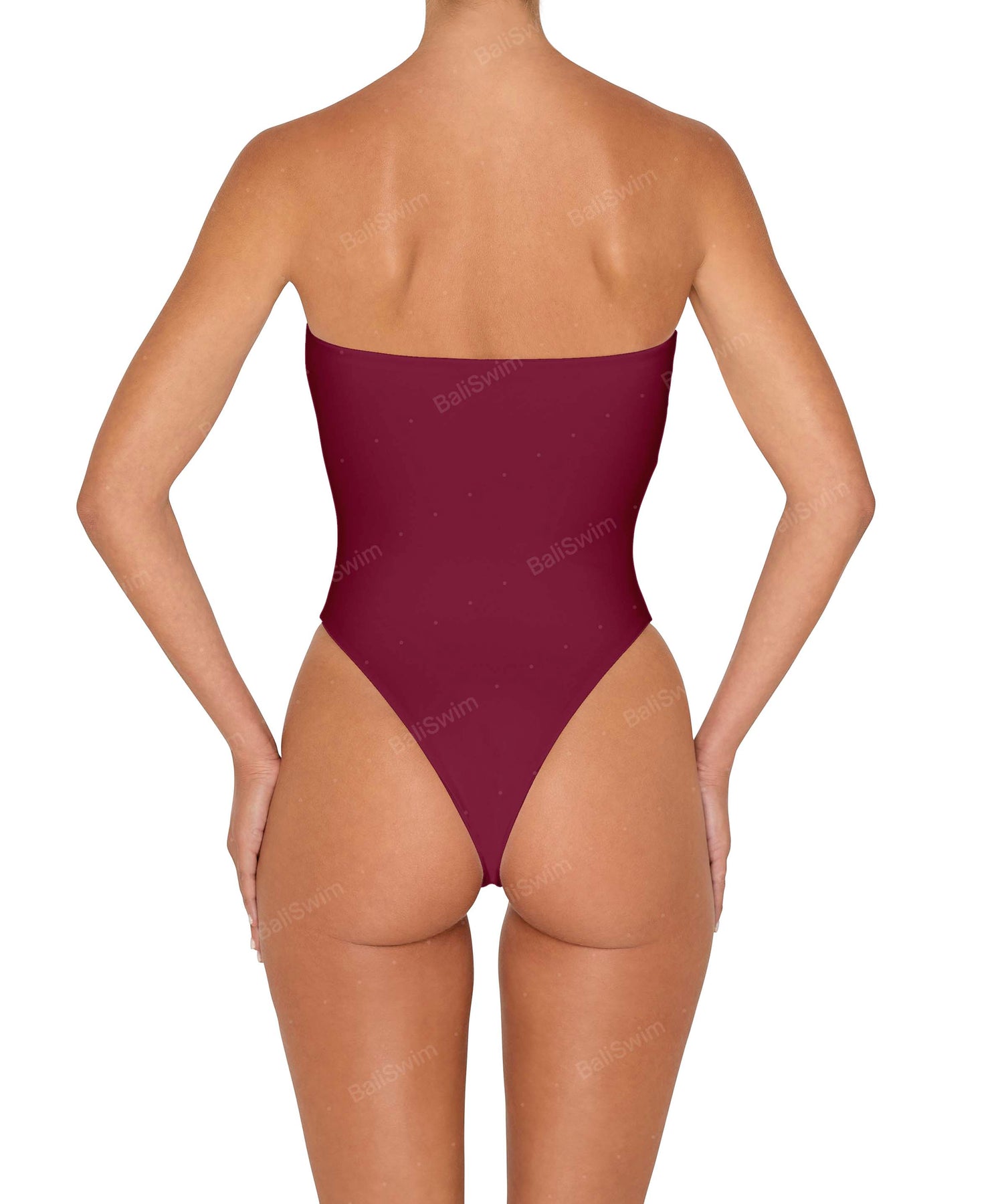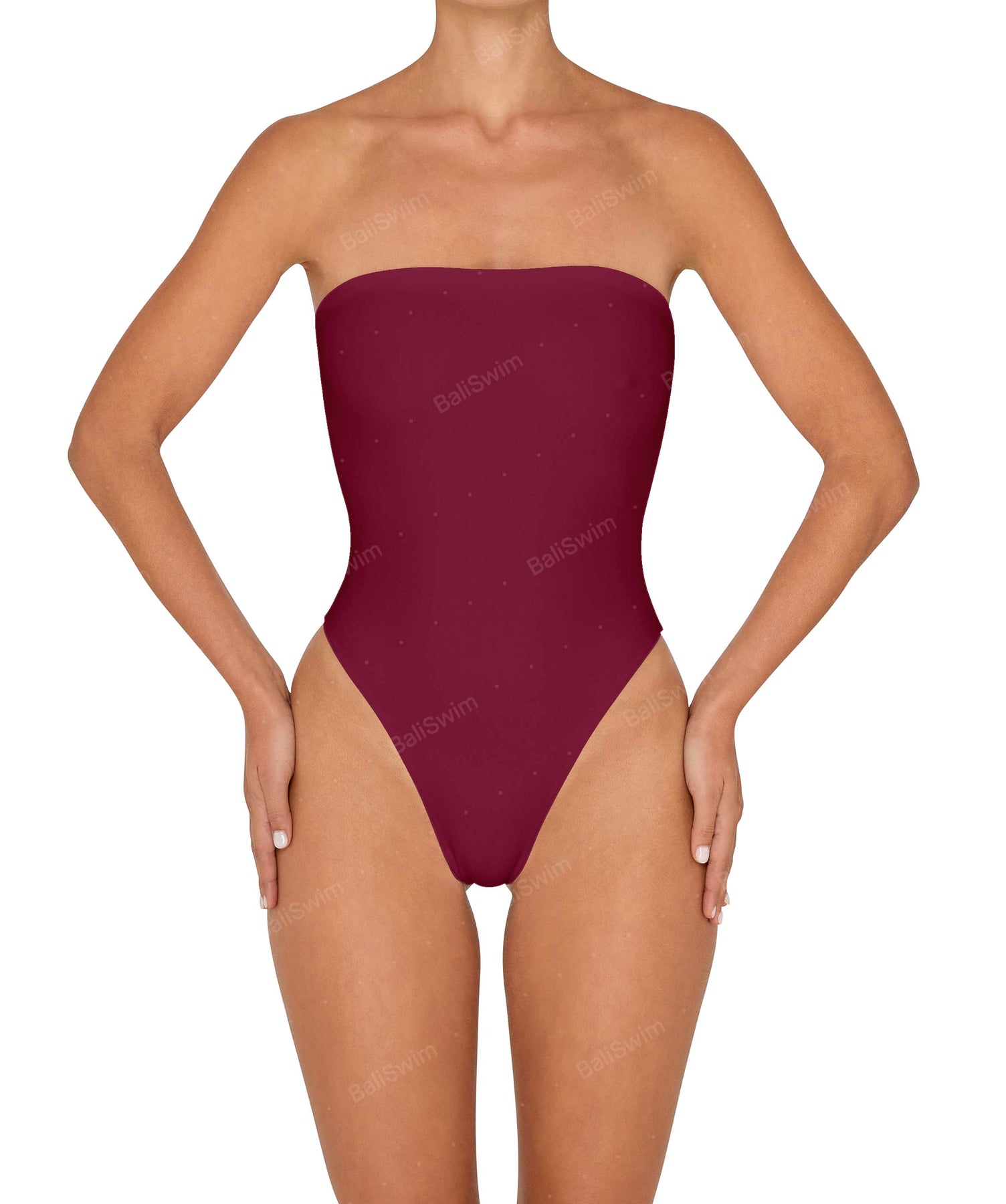 • Detail Feature: Classic strapless onepiece, high hip cut, silicon tape on the top bust to prevent slippage, and seamless finish