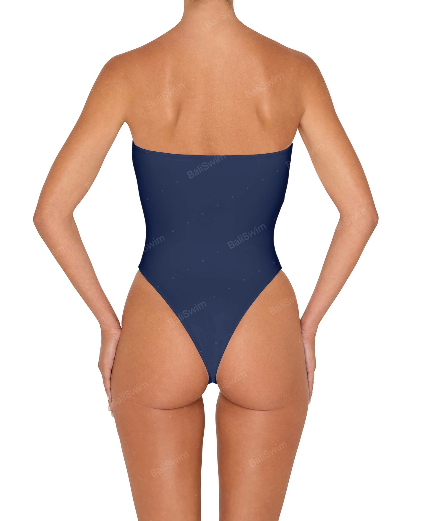 - Detail Feature: Classic strapless onepiece, high hip cut, silicon tape on the top bust to prevent slippage, and seamless finish