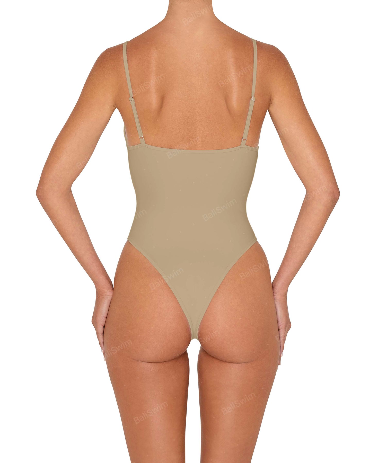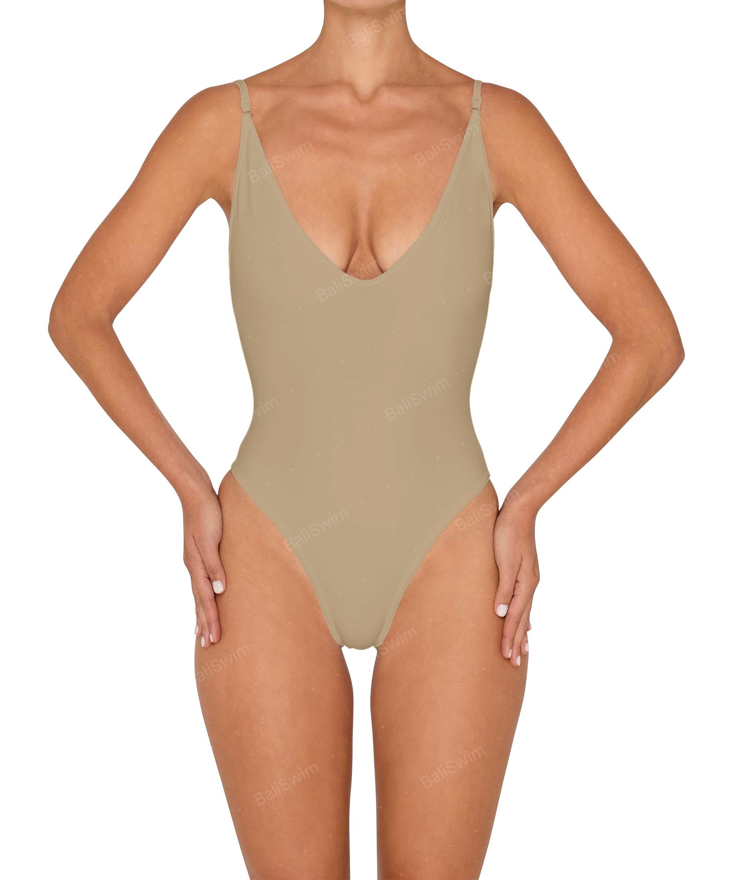 - Detail Feature: Bindind plunge neck one piece, O ring strap details with adjustability