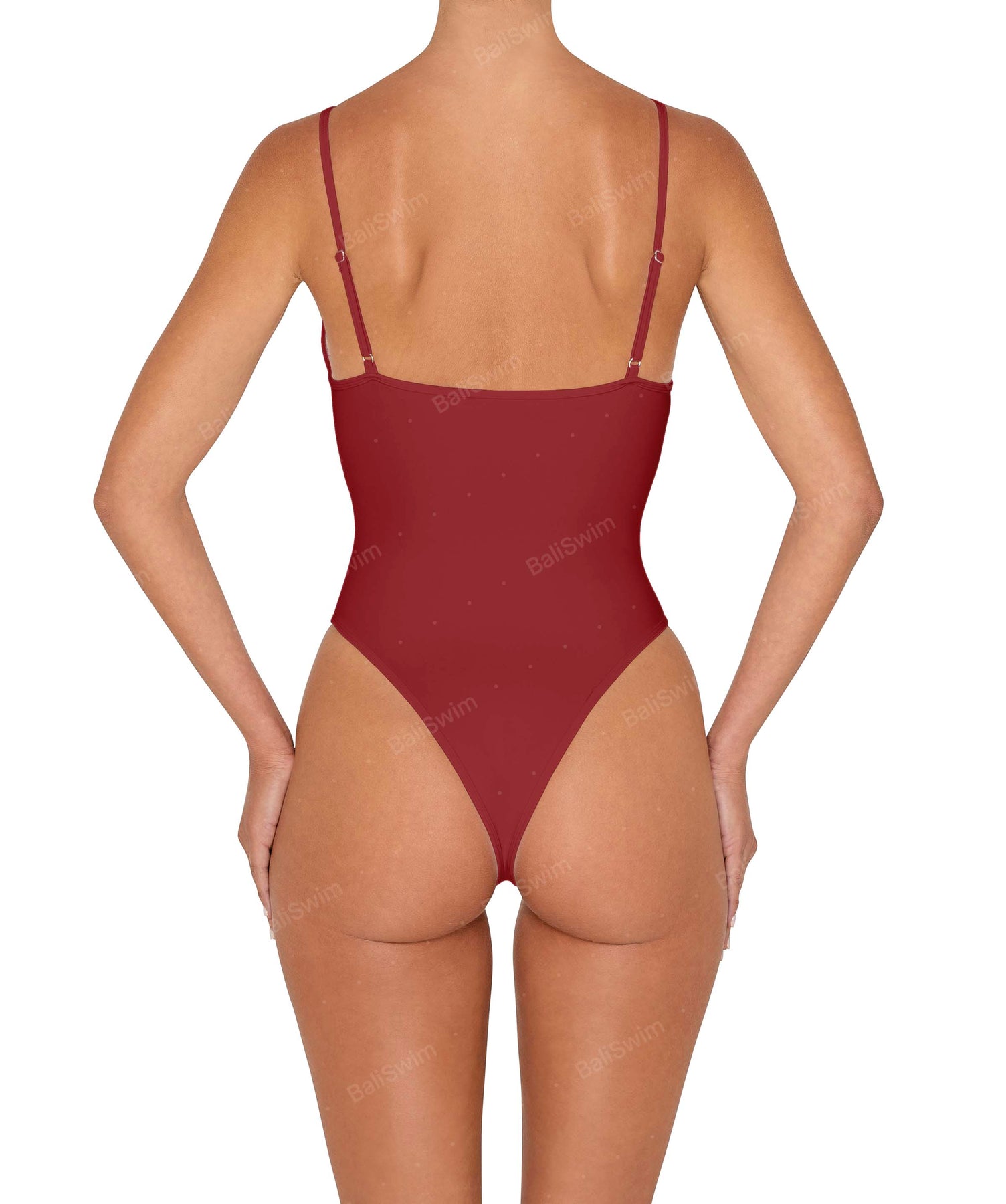 - Detail Feature: Bindind plunge neck one piece, O ring strap details with adjustability