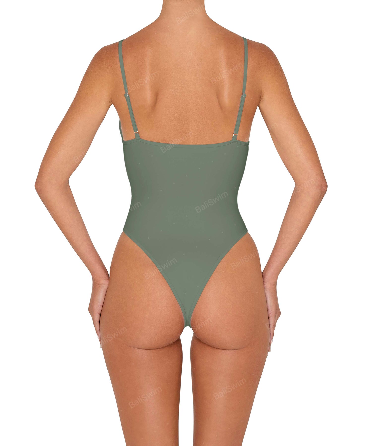 - Detail Feature: Bindind plunge neck one piece, O ring strap details with adjustability