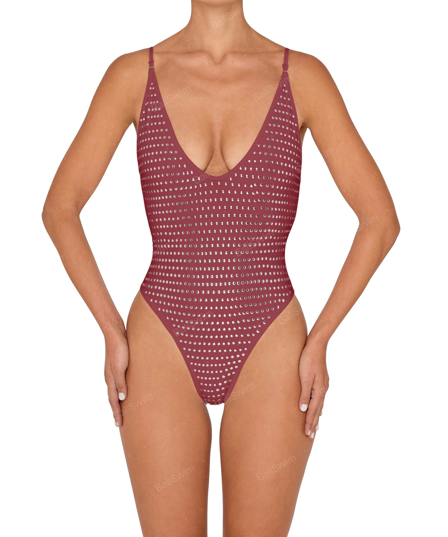 - Detail Feature: Bindind plunge neck one piece, O ring strap details with adjustability