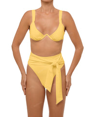 • Detail Feature: V-underwire bikini top, Fixed wide shoulder straps, Gathered bust detail, Adjustable tie closure, Bralette style
