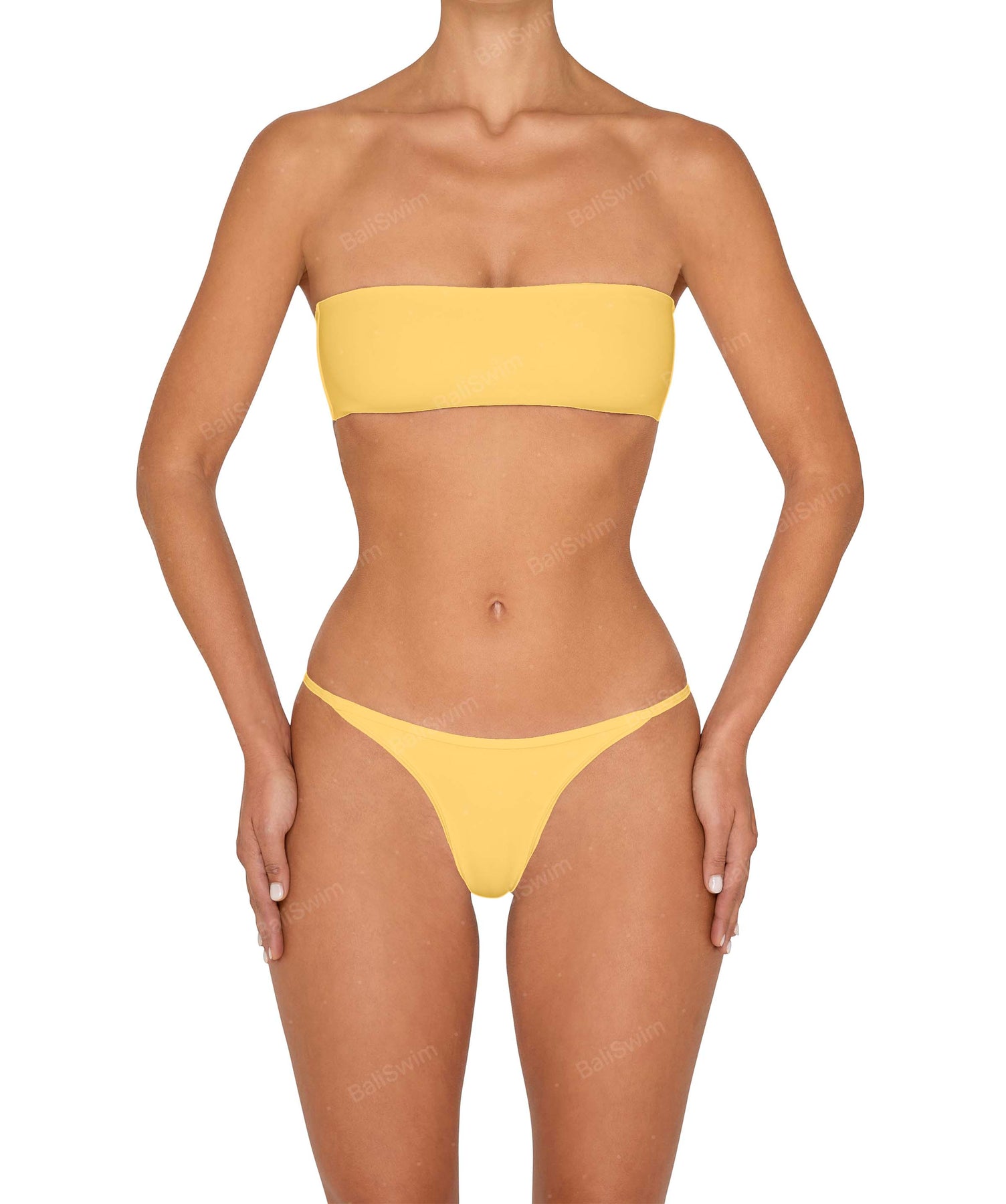 - Detail Feature: Self tied bandeau, boning on the side seam to give more structure, removable shoulder straps