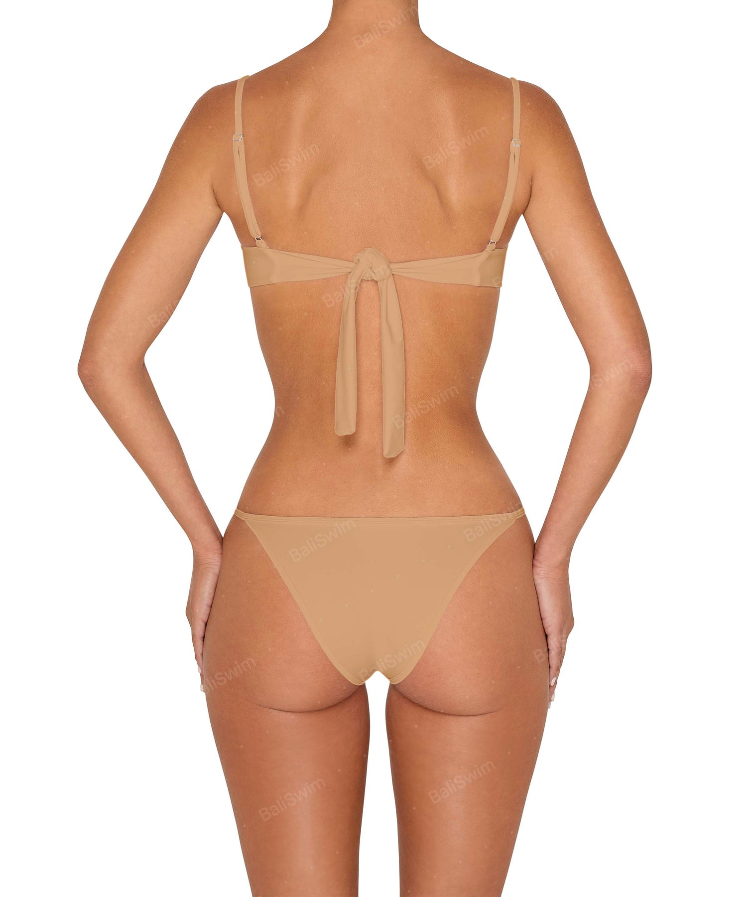 - Detail Feature: Underwire self tied top, adjustable shoulder straps, o ring details