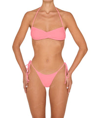 - Detail Feature: Halter bandeau top, Center front ruching, with Seamless finishing