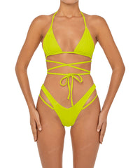 • Detail Feature: Triangle Bikini Top, Adjustable underbust, Halter ties, Adjustable wrap around straps detail