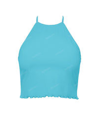 - Detail Feature: Tankini camisole style, Halter Neckline, High neck, Adjustable tie closure