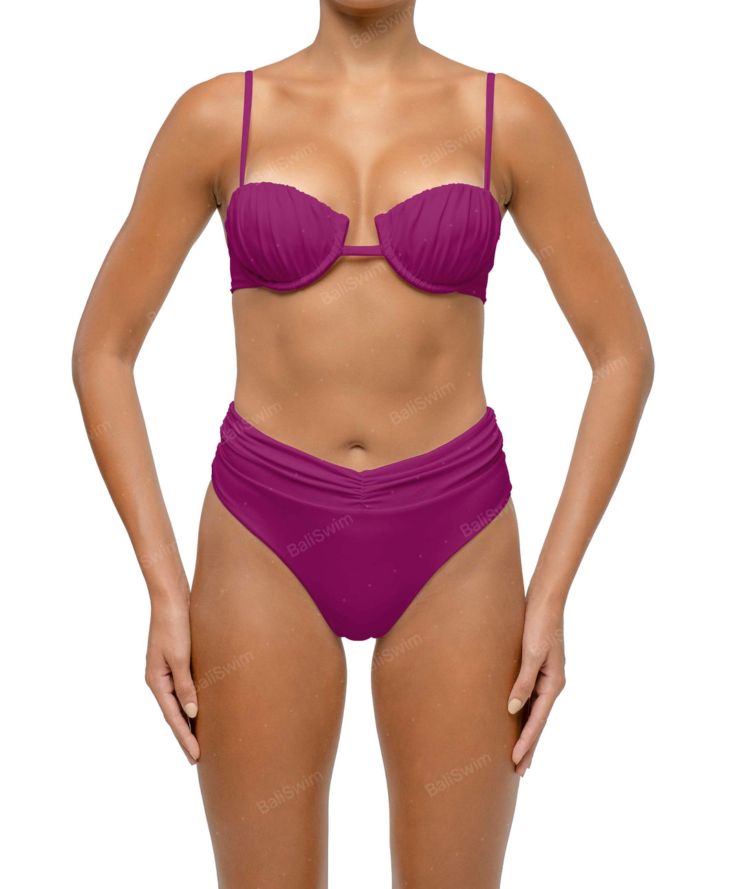 From ruffled accents in BSWS-T130 and BSWS-B130 to ruched underwired bikinis in BSWS-T131 paired with ruched bottoms BSWS-B131, double straps bikinis in BSWS-T128 & BSWS-B128, and stunning details on BSWS-T120 & BSWS-B120, every piece is crafted with meticulous attention.
