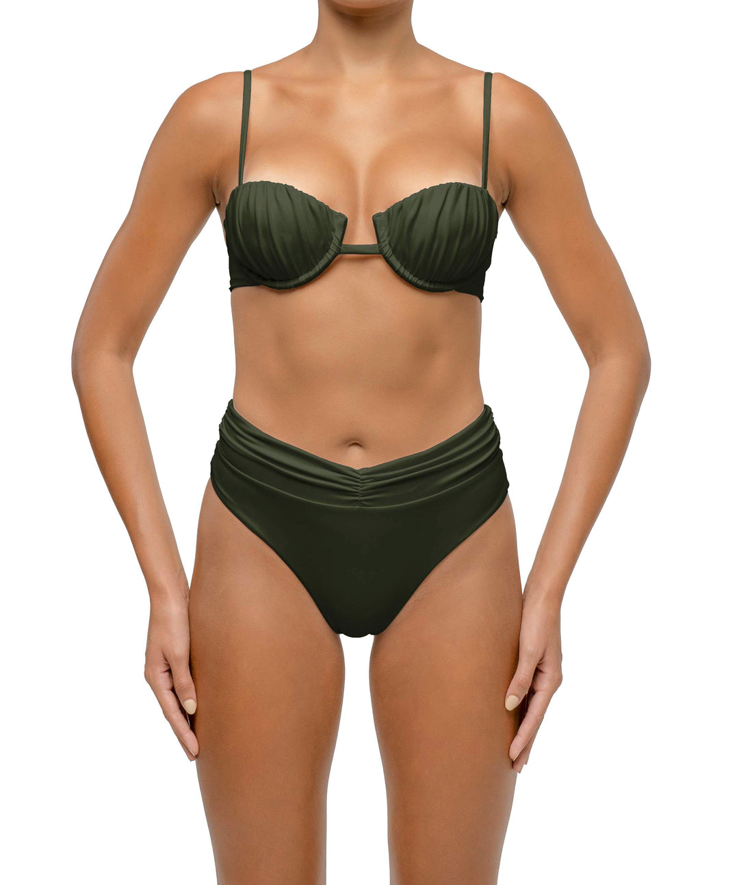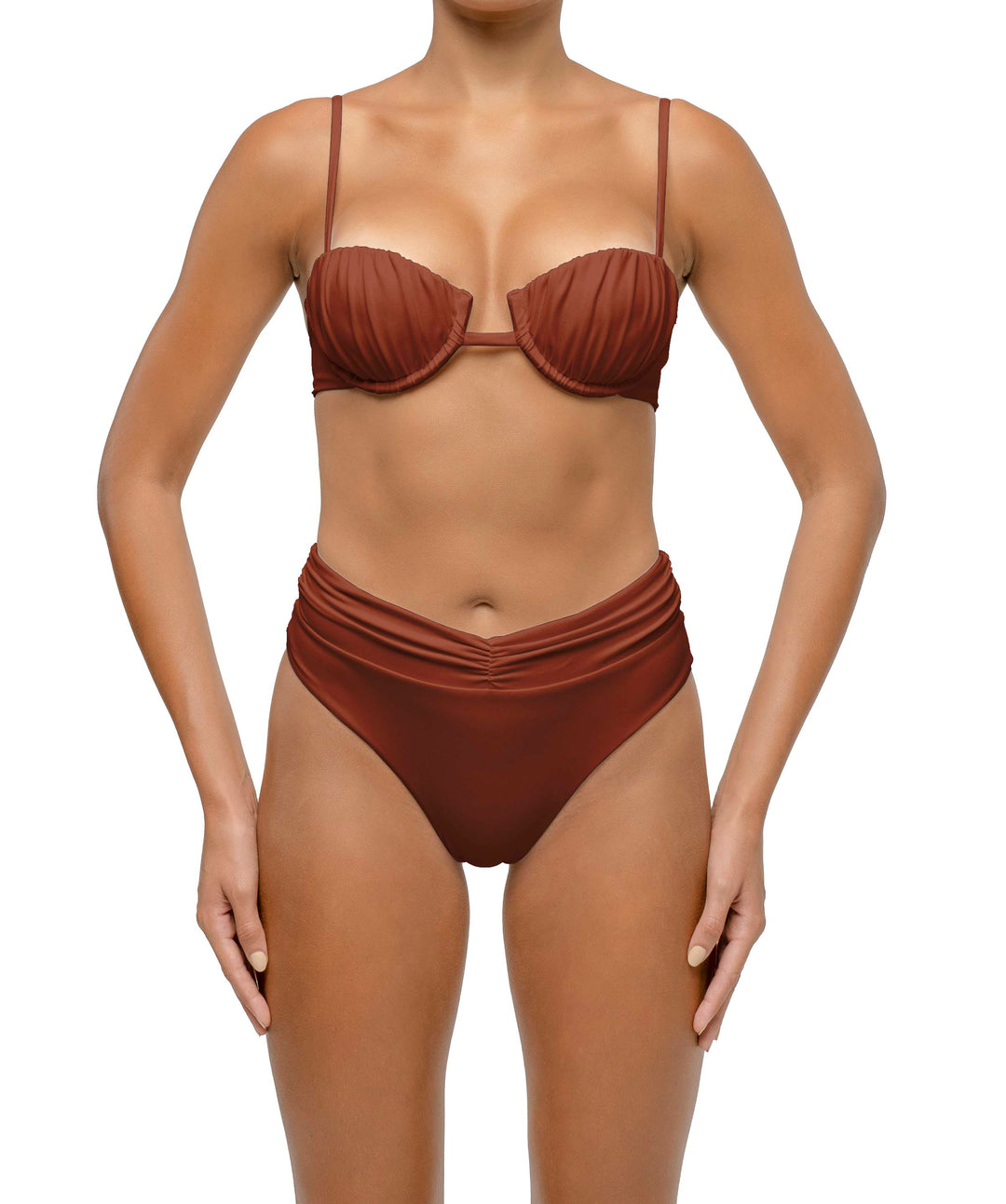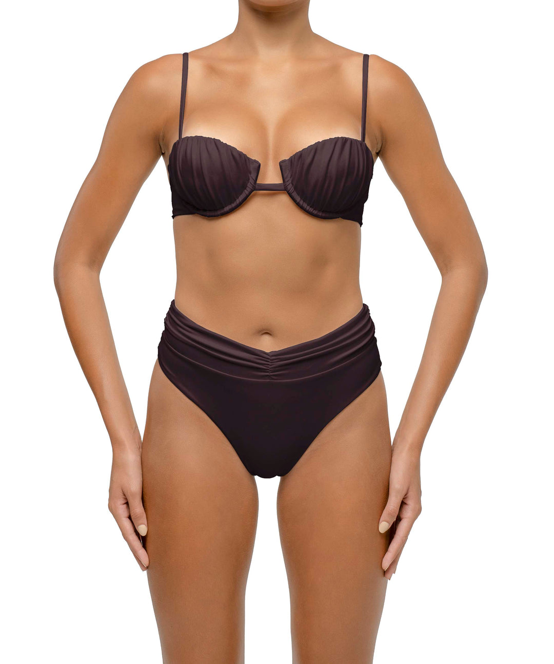 From ruffled accents in BSWS-T130 and BSWS-B130 to ruched underwired bikinis in BSWS-T131 paired with ruched bottoms BSWS-B131, double straps bikinis in BSWS-T128 & BSWS-B128, and stunning details on BSWS-T120 & BSWS-B120, every piece is crafted with meticulous attention.