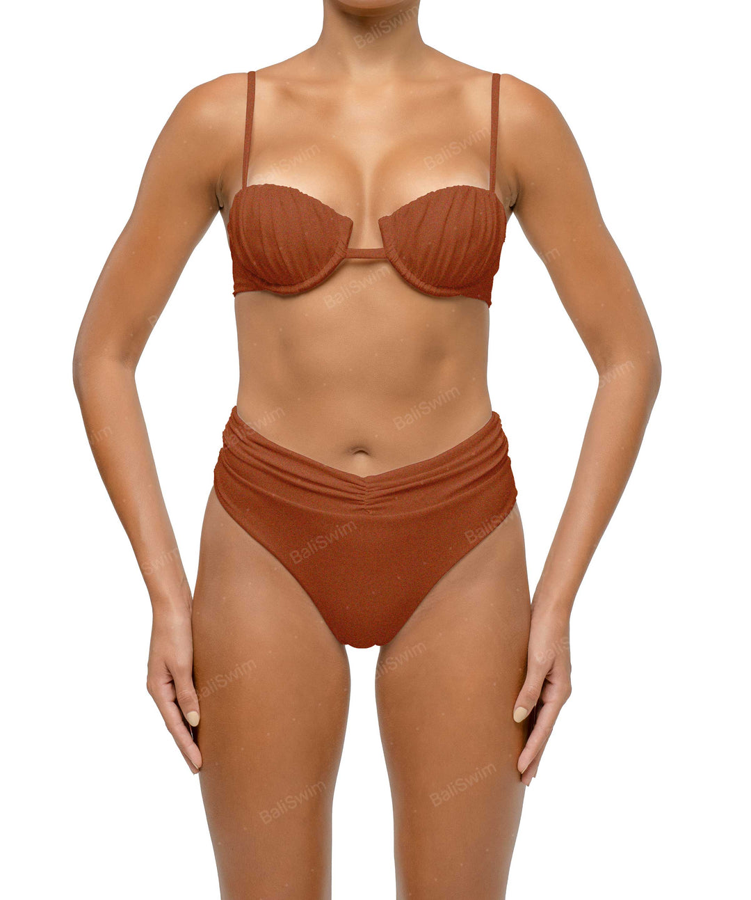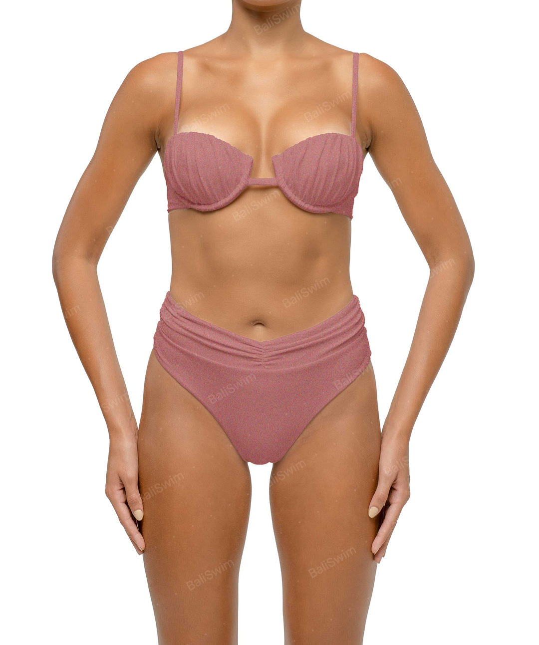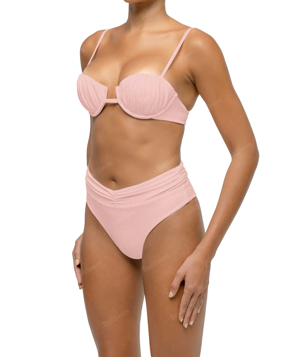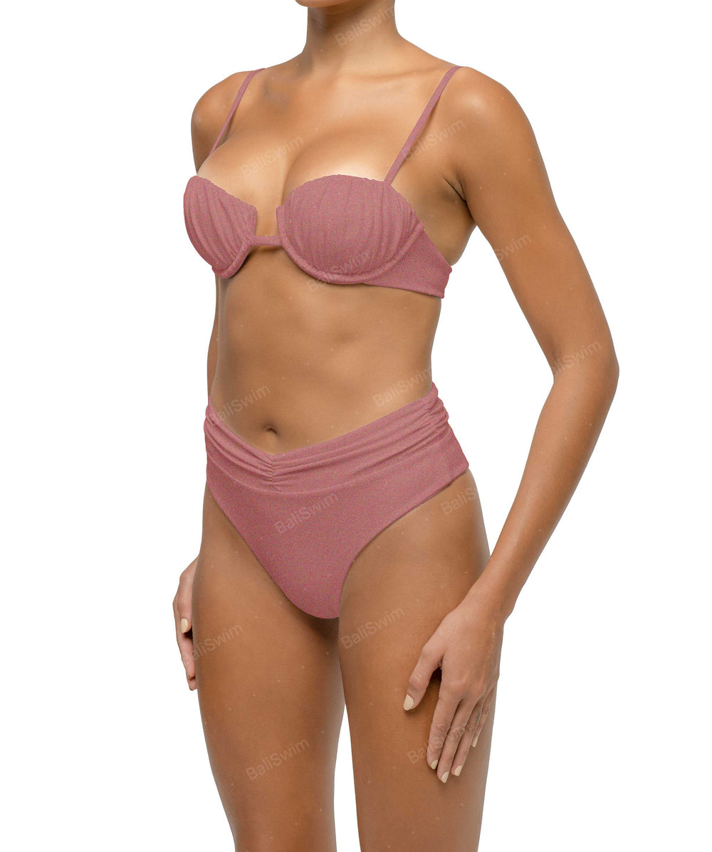 From ruffled accents in BSWS-T130 and BSWS-B130 to ruched underwired bikinis in BSWS-T131 paired with ruched bottoms BSWS-B131, double straps bikinis in BSWS-T128 & BSWS-B128, and stunning details on BSWS-T120 & BSWS-B120, every piece is crafted with meticulous attention.