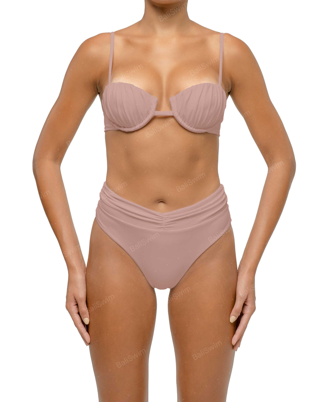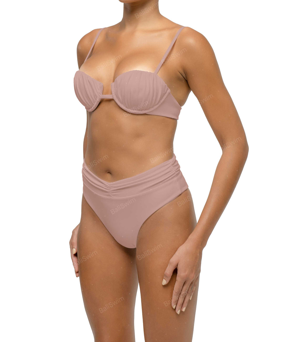 From ruffled accents in BSWS-T130 and BSWS-B130 to ruched underwired bikinis in BSWS-T131 paired with ruched bottoms BSWS-B131, double straps bikinis in BSWS-T128 & BSWS-B128, and stunning details on BSWS-T120 & BSWS-B120, every piece is crafted with meticulous attention.