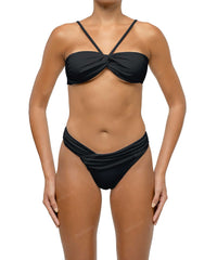 - Detail Feature: Asymetrical bottom, Ruched detail, Mid rise, Brief style