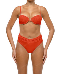 - Detail Feature: Front and back ruching detail, High rise, High cut, Brief style